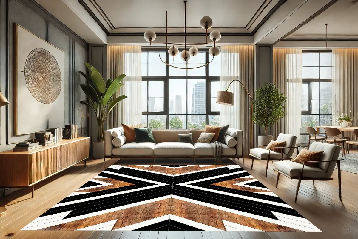 The Bold Chevron Luxe Rug makes a striking statement with its sharp geometric design featuring contrasting black and white chevrons interwoven with warm wood-grain accents. This contemporary masterpiece blends modern minimalism with rustic charm, creating a visually dynamic centerpiece for any space. Crafted with premium, hypoallergenic materials and a secure non-slip backing, it offers durability and functionality. Ideal for living rooms, offices, or creative spaces, the Bold Chevron Luxe Rug…