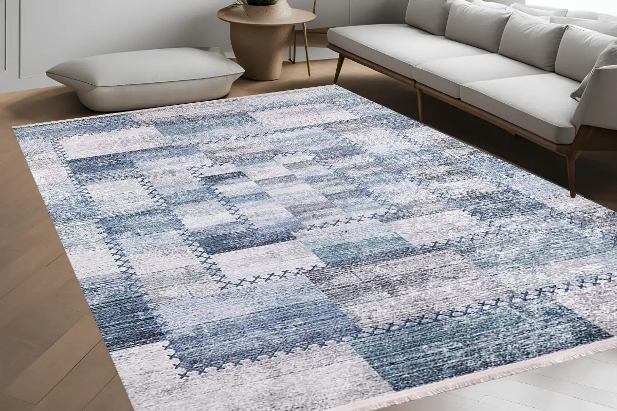 Enhance your living space with the timeless charm of the Patchwork Ocean Rug. Featuring a delicate blend of light blues, grays, and subtle whites, this rug showcases a patchwork design highlighted by intricate cross-stitch detailing. Its geometric layout creates a sense of balance and harmony, making it a versatile choice for both modern and classic interiors. Designed for durability and easy maintenance, this rug is hypoallergenic and resists stains, pet…